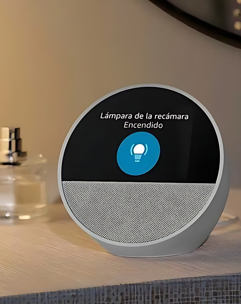 Descubre el Amazon Echo Spot, el dispositivo que lleva la conveniencia de Alexa a tu mesa de noche o escritorio, con el beneficio añadido de una pantalla táctil compacta. Este elegante híbrido entre un altavoz inteligente y un despertador te permite gestionar tu día, controlar tu casa y disfrutar de audio de calidad, todo con solo usar tu voz. Imagina despertar con música suave, ver el pronóstico del tiempo de un vistazo y apagar las luces, sin mover un dedo.