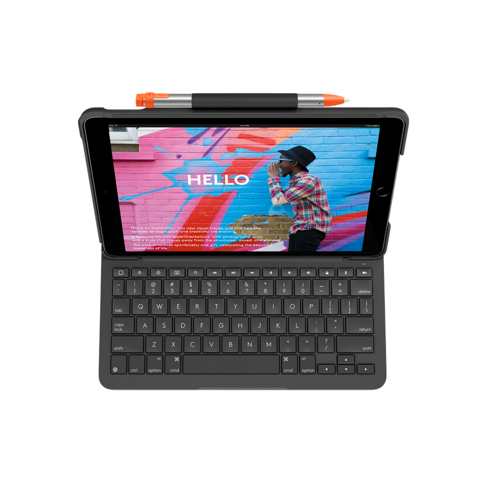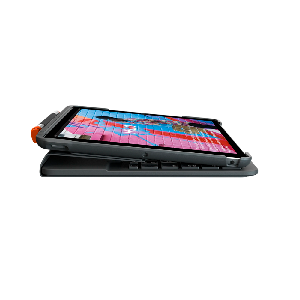 Imagina un accesorio que no solo protege tu iPad de golpes y rayones, sino que lo convierte instantáneamente en una herramienta de trabajo o estudio increíblemente eficiente. El Logitech Slim Folio es la fusión perfecta entre un teclado de precisión y una funda protectora, diseñado para liberar todo el potencial de tu tableta. Escribe, navega y crea sin límites, donde sea que te lleve tu día.