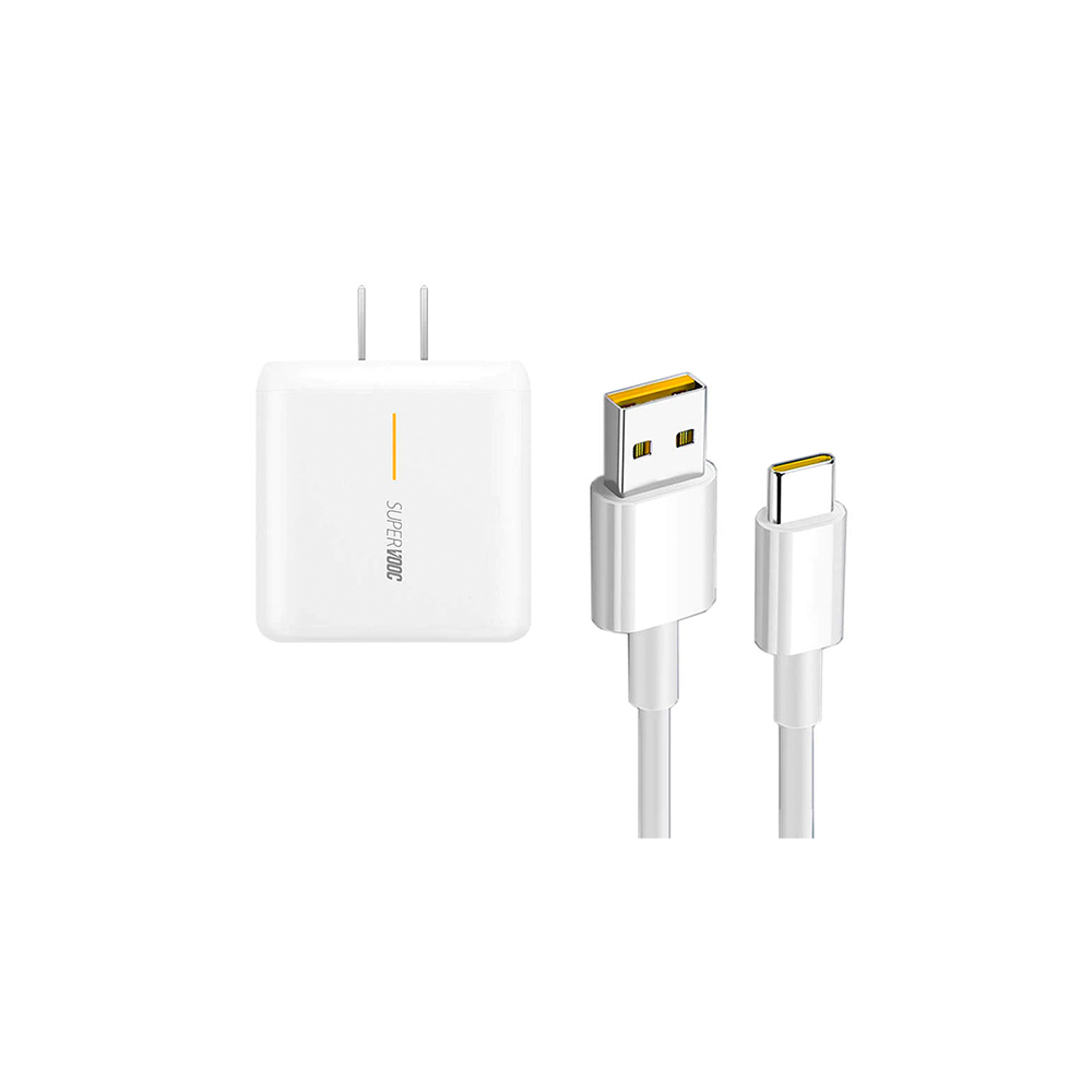 Oneplus, Oppo 65W Super VOOC Charger Power adapter Kit 5V - 2A / 10V - 6.5 (MaX) With Cable Type C - White