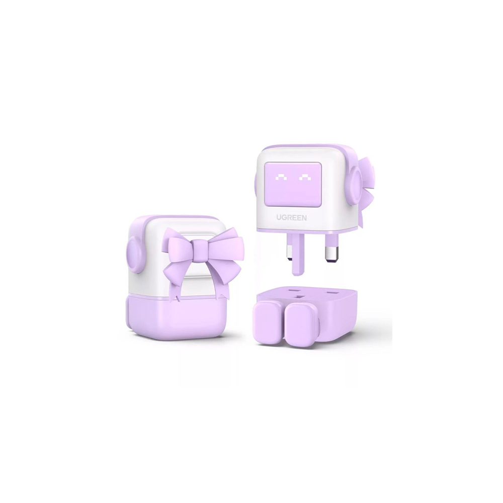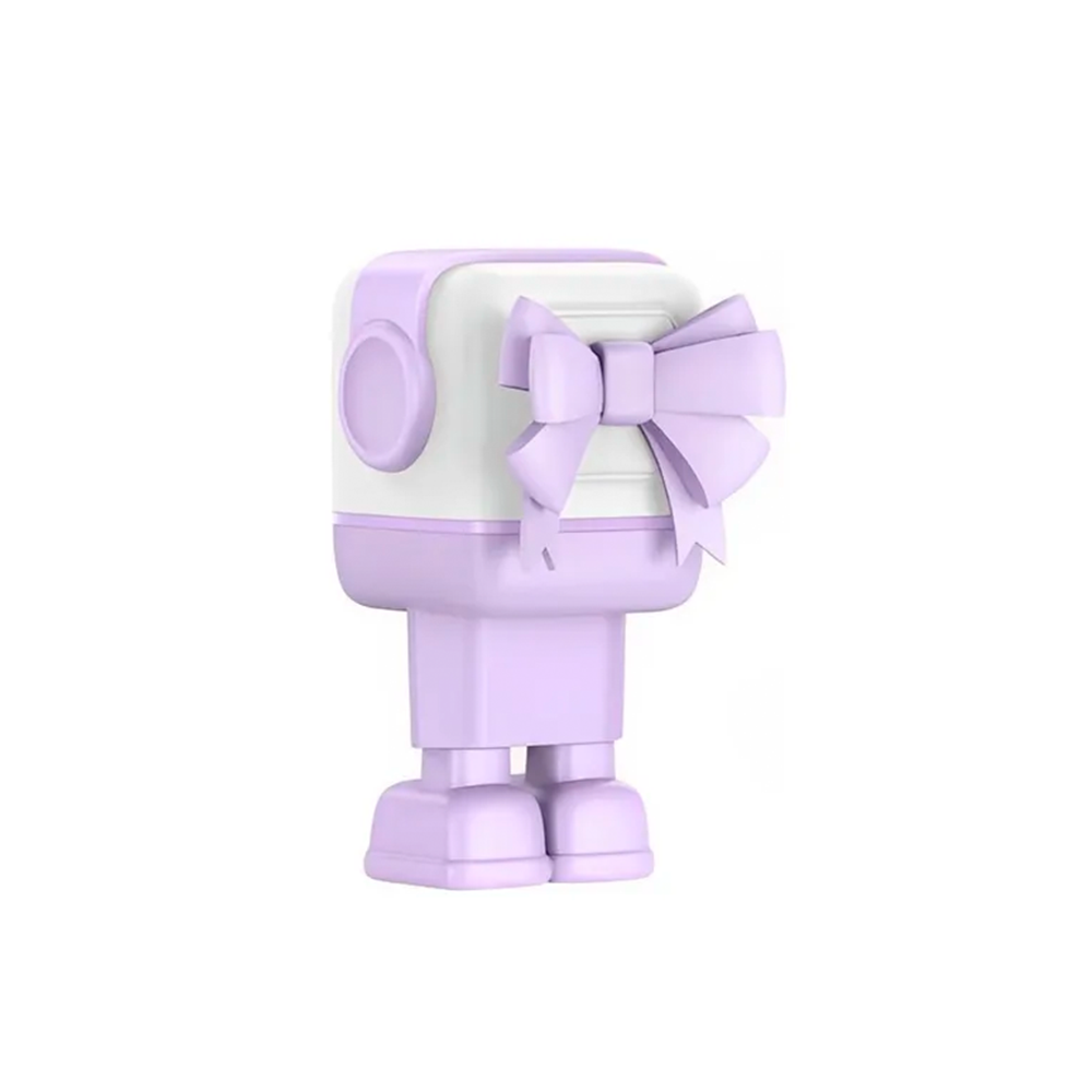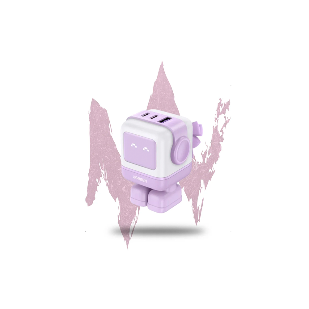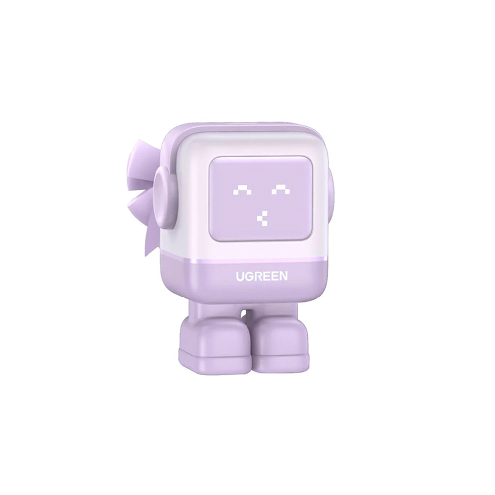 Presenta un diseño divertido con forma de robot, con una carita LED que muestra el estado de carga en tiempo real (con expresiones tipo "emoji")